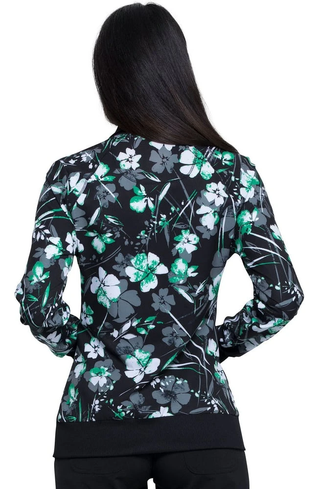 Add a touch of paradise to your day with the Infinity by Cherokee Women’s Botanical Gestures Print Scrub Jacket. The brilliant contrasting florals have a sporty, outdoor edge that gives this scrub jacket both an athletic and fashion-forward feel.