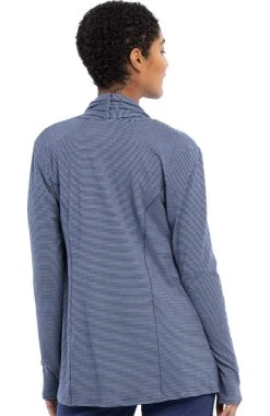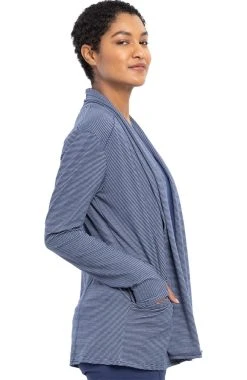 Dress to impress in the ultra-comfortable, Infinity by Cherokee Women’s Open-Front Stripe Print Scrub Jacket. This lovely layer features a fashionable micro-stripe that adds a hint of texture to your look.