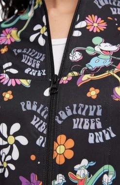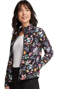 Layer your uniform in retro-cool style with Daisy Duck and Donald Duck in the Tooniforms by Cherokee Women’s Packable Positive Vibes Print Jacket. It conveniently packs up into the right pocket so you can stash it in your bag – how clever is that?