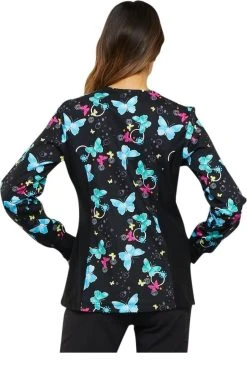 Cherokee Clearance Women’s Zip Front Knit Panel Butterfly Print Scrub Jacket