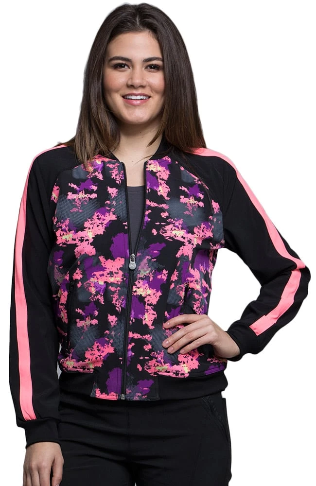Cherokee Clearance Women’s Zip Front Warm-Up Abstract Print Scrub Jacket