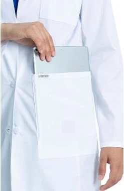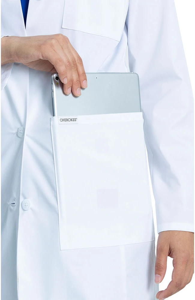 Enjoy the signature utilitarian design and craftsmanship of the Project Lab by Cherokee Women’s 33″ Consultation Lab Coat. This fuller length lab coat features flattering, contoured front and back seaming along with an adjustable front button placket.