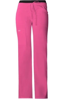 Cherokee Workwear Core Stretch scrubs have features that make them fashionable and ensure their durability. For example, these drawstring scrub pants have a back leg seam and double needle top stitching. In addition to the functional drawstring, these scrub pants have a comfortable knit waistband with encased elastic. There are lots of pockets, including two patch pockets. The cargo pocket on the right leg has several sections so you can comfortably carry all your tools. There are also two back patch pockets. The inseam is 31″. The fabric is a poly/spandex poplin.