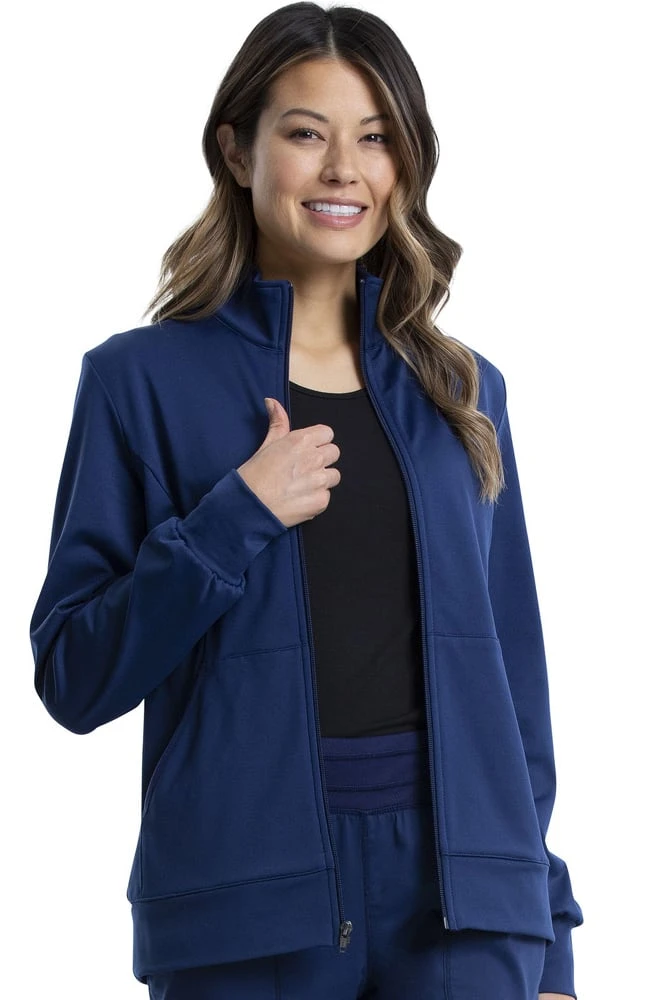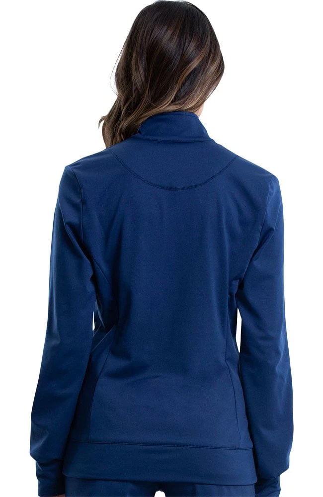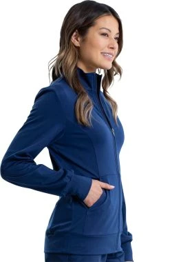 The warm and comfortable Revolution by Cherokee Workwear Women’s Knit Solid Scrub Jacket features an ultra-modern fit that protects you from the elements. This sleek, moisture-wicking jersey knitted jacket keeps you refreshed and comfortable throughout the day.