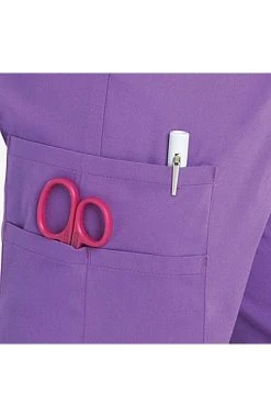 This drawstring scrub pant has fresh styling and lots of handy features. You can find the perfect fit thanks to the adjustable drawstring and back elastic waistband. There are scoop pockets at the waist and layered patch cargo pockets on the right leg and a back patch pocket. The cargo pocket includes a flexibly knit interior pocket. Side vents keep movement easy.