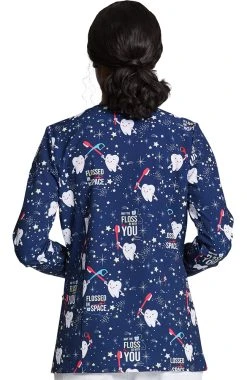 The EDS Signature by Dickies Women’s Snap Front Flossed In Space Print Scrub Jacket lets you reach for the stars, with dental and ‘flossy’ characters. The stunning Flossed In Space print adds some sparkle to a classic dental scrub jacket.