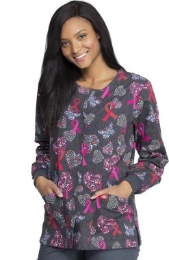 Share your passion for a good cause with the EDS Signature by Dickies Women’s Snap Front Speck-Tacular Love Print Scrub Jacket. This stunning Breast Cancer Awareness print scrub jacket allows you to follow your passion in style.