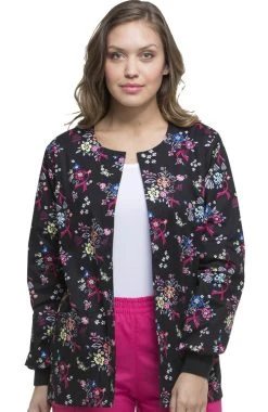 Dickies Clearance Women’s Snap Front Warm-Up Floral Print Scrub Jacket