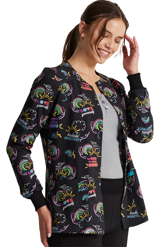 Dickies EDS Signature By Women’s Snap Front Radiate Positivity Print Scrub Jacket