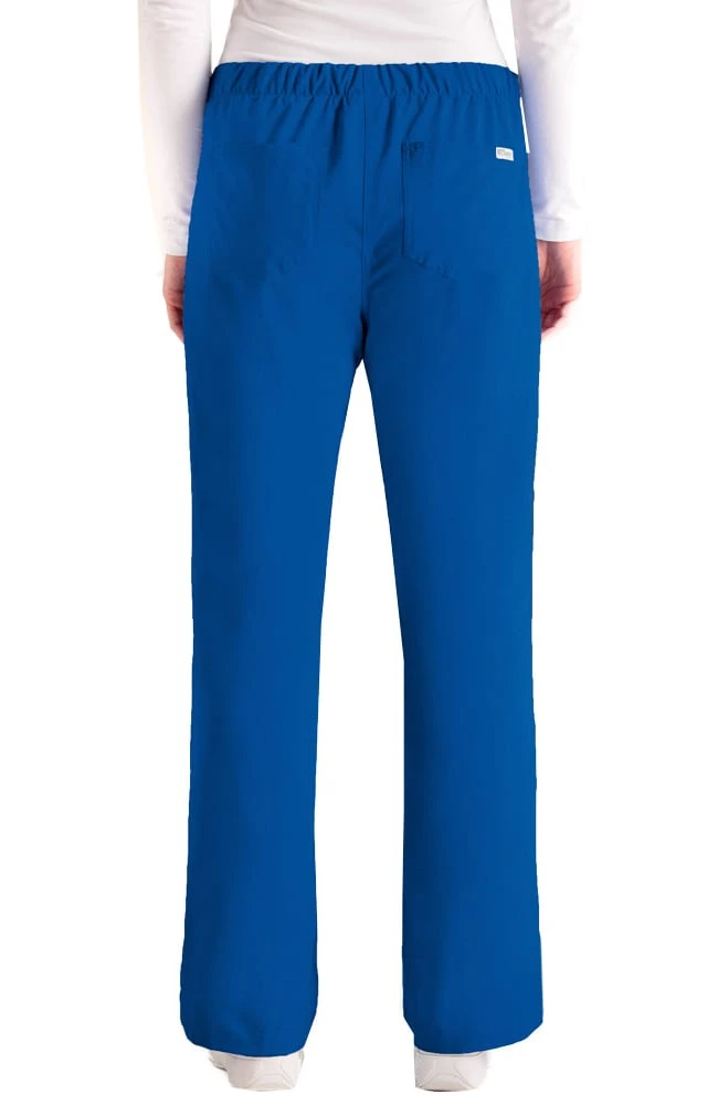 This drawstring scrub pant from Grey’s Anatomy Classic boasts a contemporary fit, in signature soft, relaxed fabric. The 4232 flatters with a slim cut through the hip and thigh. Slits at the ankle keep movement easy. An elastic-back waist ensures your comfort. Just like your jeans, these scrub pants have two slash-cut front pockets, a coin pocket, and two back pockets. They come in a huge range of solid colors and sizes, making them great for uniform or group purchases. Inseam in size medium is 31½”.