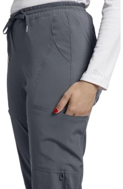 Designed to satisfy your competitive edge, the athletically-inspired Spandex Stretch by Grey’s Anatomy Women’s Kim Colorblock Scrub Pant is sure to add to your performance. Enjoy the sleek, subtle pockets, durable stretch fabric and bold colorblock statement.
