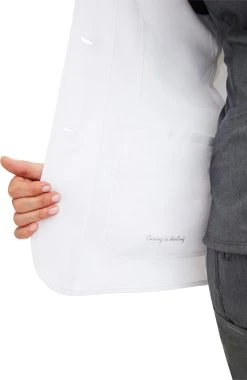 Experience the functional simplicity of the minimalist Lab Coats by Healing Hands Women’s Flo Lab Coat. This coat has all the bells and whistles you need, while mainlining a professional, clean look. The coat includes a message from Healing Hand’s founder: Caring is healing.