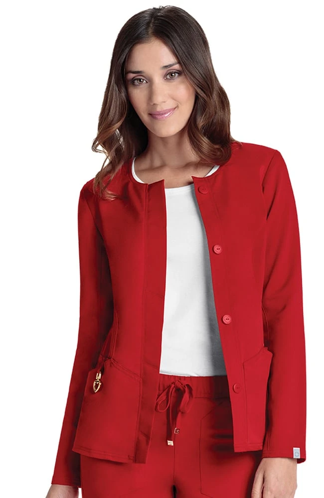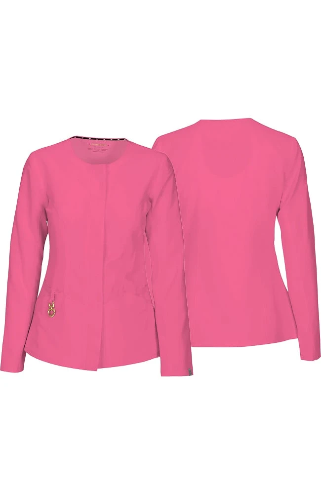 Fall in love with the Head Over Heels by heartsoul with CERTAINTY® Antimicrobial Fabric Technology Women’s Warm My Heart Button Front Scrub Jacket. Multiple pockets and contoured seaming blend fashion and function with antimicrobial fabric.