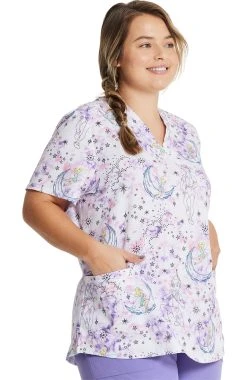 The Break On Through by heartsoul Women’s Starlight Tink Print Scrub Top features cherished Disney® characters that add personality to your uniform. This soft, stretchy scrub top also has a flattering neckline, front pockets, and a curved hemline.