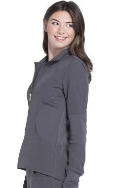 Rib knit details add to the sporty style of this Break On Through by heartsoul Women’s Zip Front Warm-Up Solid Scrub Jacket. A signature heat transfer logo and zipper pull add the feminine details you love.