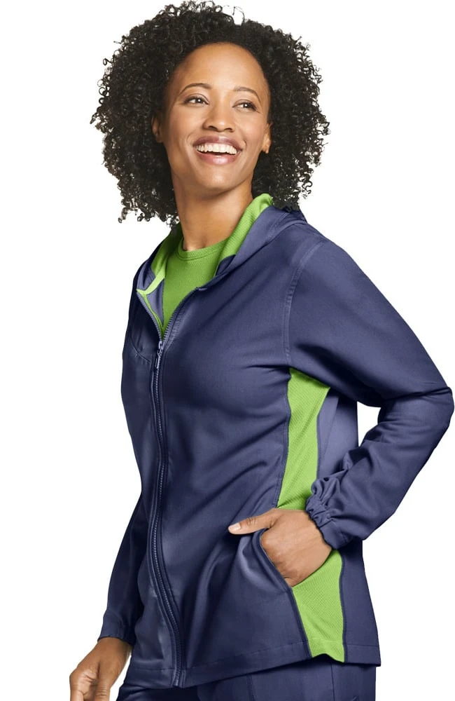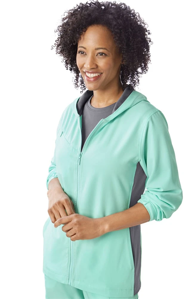 Never be out of step with the Retro by Jockey® Women’s Relay Zip Hoodie Scrub Jacket. This breathable jacket will keep you calm and collected while on a run or doing rounds.