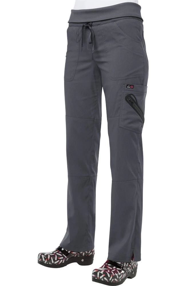 Find the perfect fit with the koi Lite Women’s Harmony Convertible Knit Waistband Scrub Pant. Roll the waistband up or down for more or less coverage.
