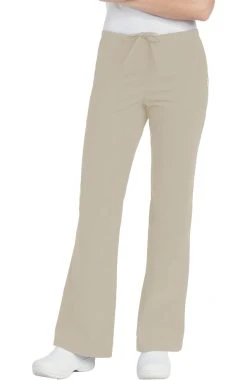 Landau Scrubs move with you all day long. These scrub pants have a slim fit through the hip and thigh with a flare leg. There is a drawstring at the waist and elastic at the back of the low-rise waist. It has side seam pockets. Made of polyester/cotton.
