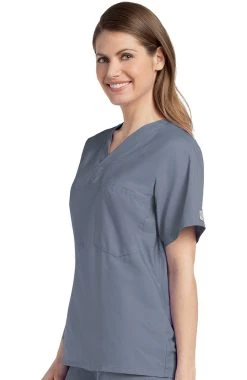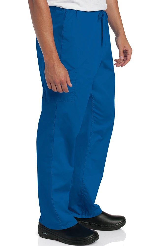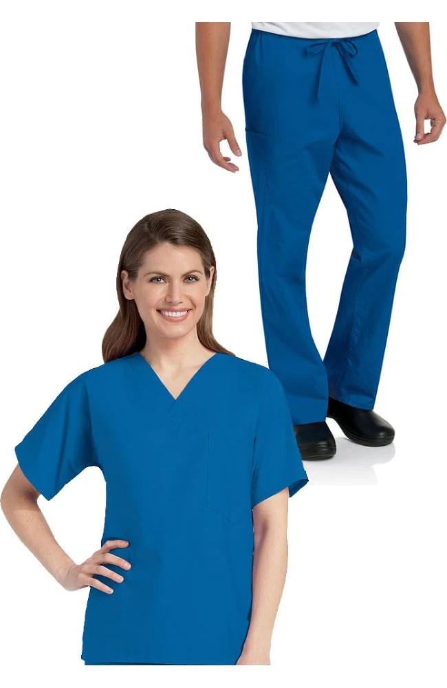 This unisex scrub set from ScrubZone works tough, fits comfortably and offers extraordinary value. The LN-4SET from Landau includes a V-neck scrub top with dolman sleeves, back yoke and one chest pocket with pencil division. The length of the scrub top is 27½”. The scrub pants have a classic drawstring waist and a useful back pocket and cargo pocket on the right leg. The pockets and seams are reinforced to stand up to the stress of your busy day. The inseam in regular sizes is 31½”.