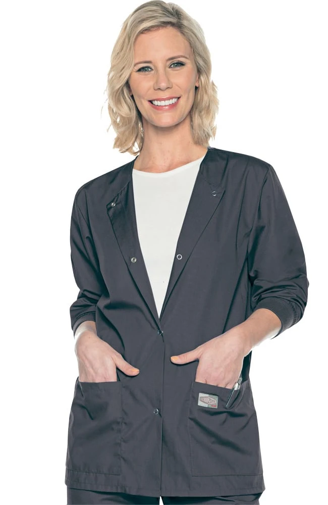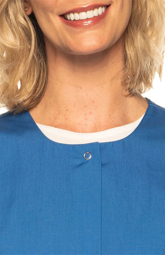Keep warm on those chilly days with the tried and true, ScrubZone by Landau Women’s Snap Front Solid Scrub Jacket. The moisture-wicking fabric keeps your from sweating, while also maintaining your ideal temperature in most settings.