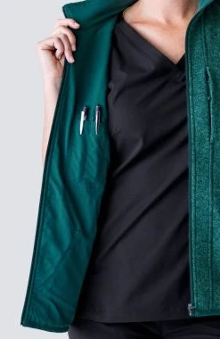When you want a polished extra layer that is warm but won’t get in your way, the Medelita Women’s Strata Sweater Fleece Vest is for you. The soft, sweater-knit fleece looks and feels refined, while strategically placed scrub fabric inner panels help you stay cool and comfortable where you need it. With five pockets and a badge clip, it’s perfectly practical, whether you’re at work or on the go.
