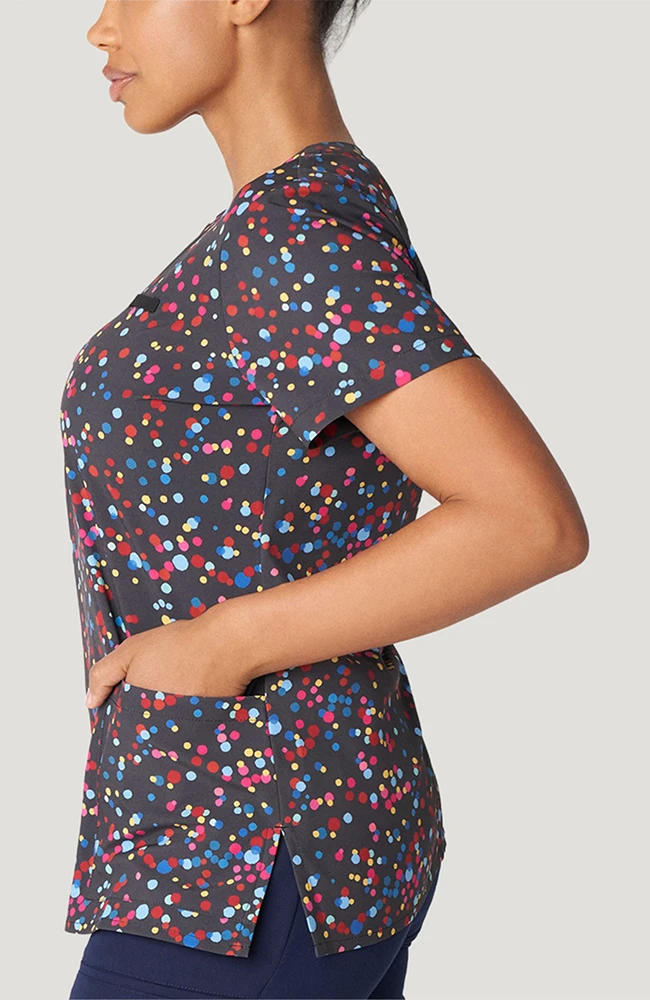 Versatile and full of personality, the Marvella by White Cross Women’s V-Neck Speck Tacular Print Scrub Top features pockets for your needs, side vents for extra movement, and soft, stretchy fabric that works as hard as you do.
