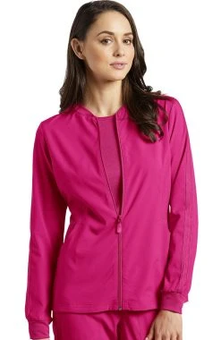 Mesh insets keep the Fit by White Cross Women’s Zip Front Mesh Detail Solid Scrub Jacket sporty and sleek. Smooth fabric has plenty of stretch and easy care.