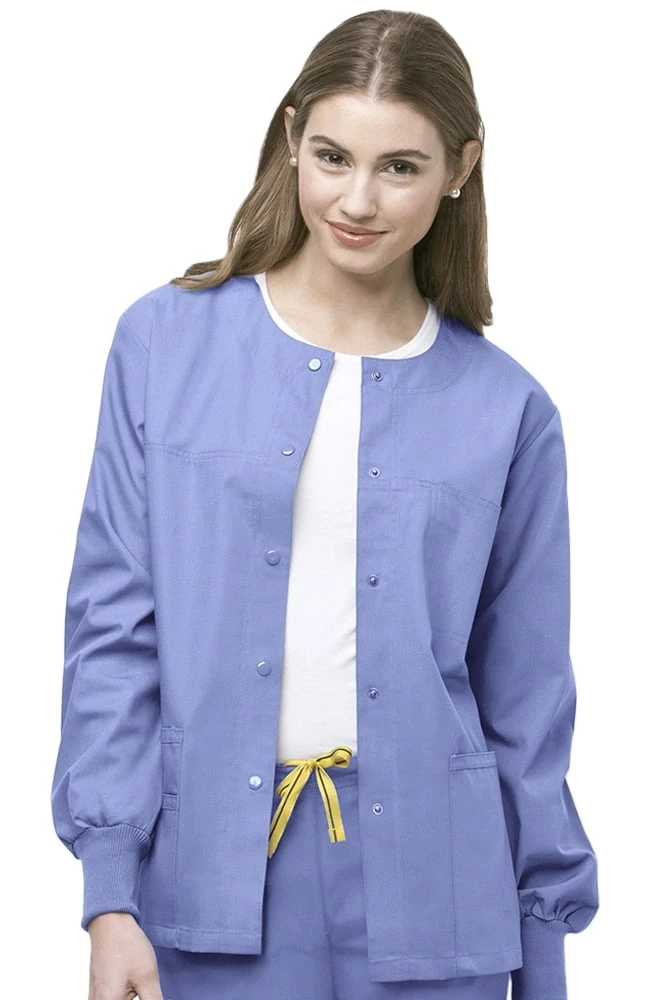 This WonderWink snap-front scrub jacket is loaded with features. A perfect long-sleeve choice that features multiple outer pockets and two inner chest pockets. Made from easy-care polyester/cotton.