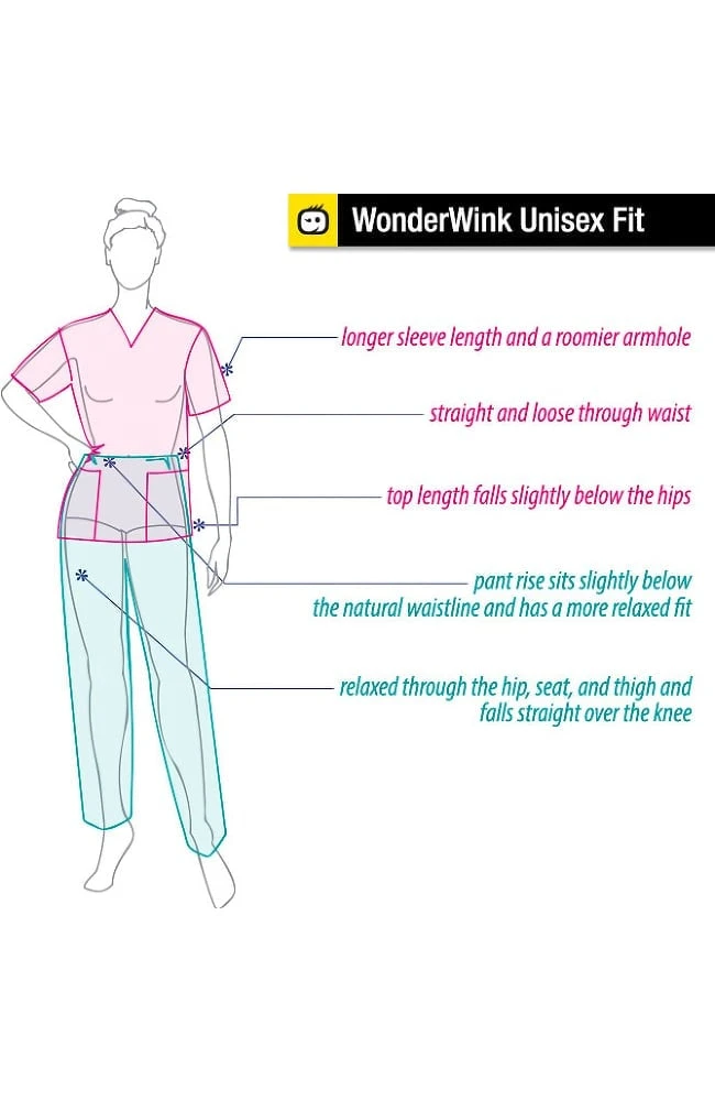 These easy fit and easy-to-wear scrub pants from WonderWink have a relaxed fit that flatters all body types. They have a drawstring waist, ID bungee loop, and four pockets.